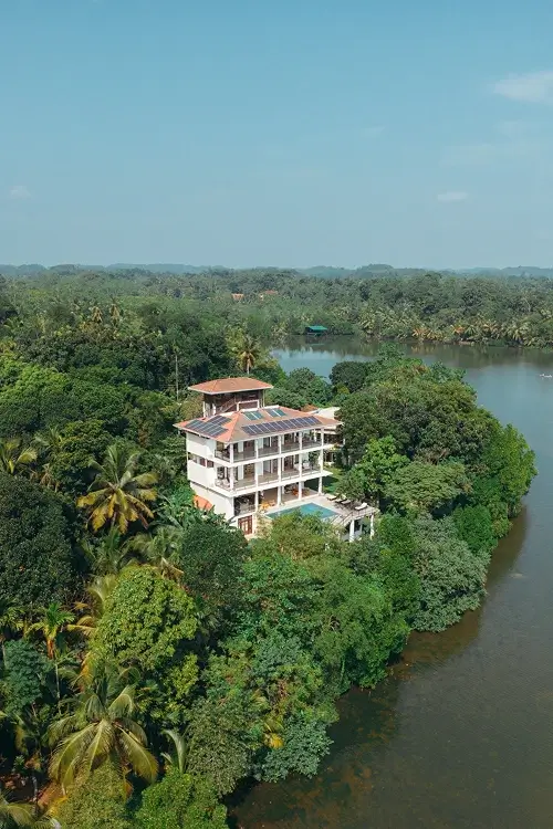 Our sustainably run yoga school sits on the edge of Koggala Lake, surrounded by jungle, birdsong, and open skies. Every element—from the polished concrete floors to the breezy shala—is intentional.